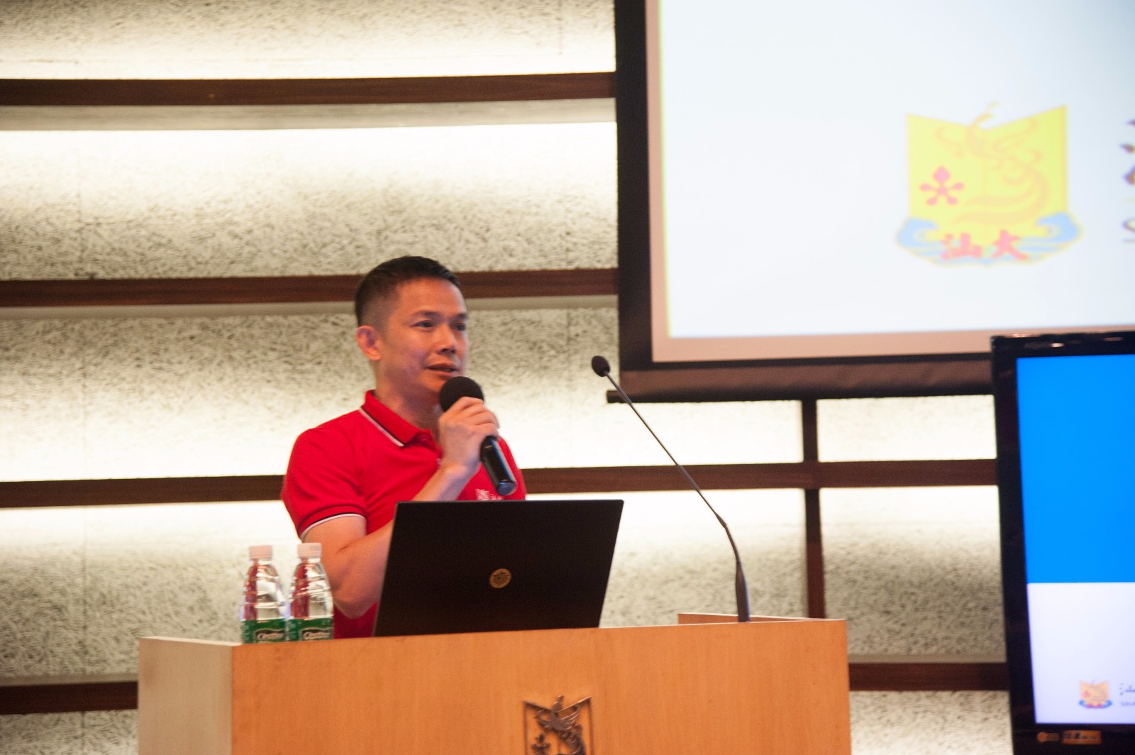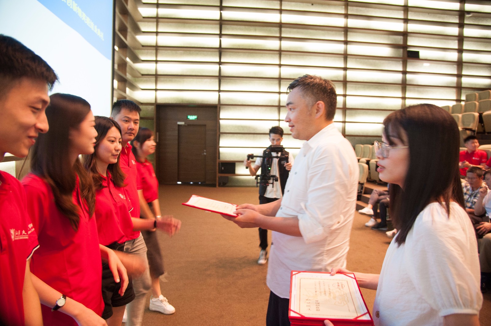 汕头大学喻洪副校长为优秀班委颁发奖牌