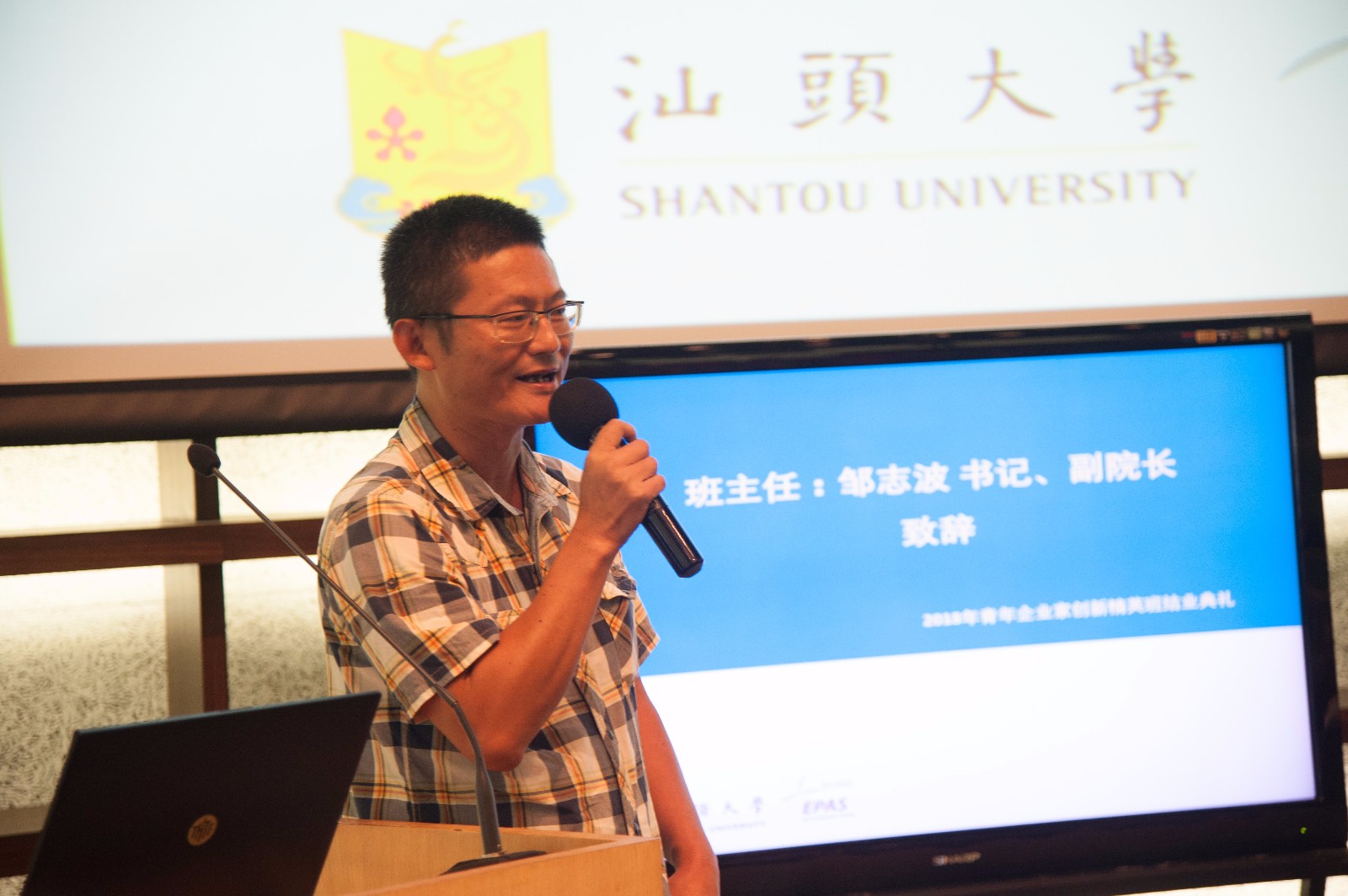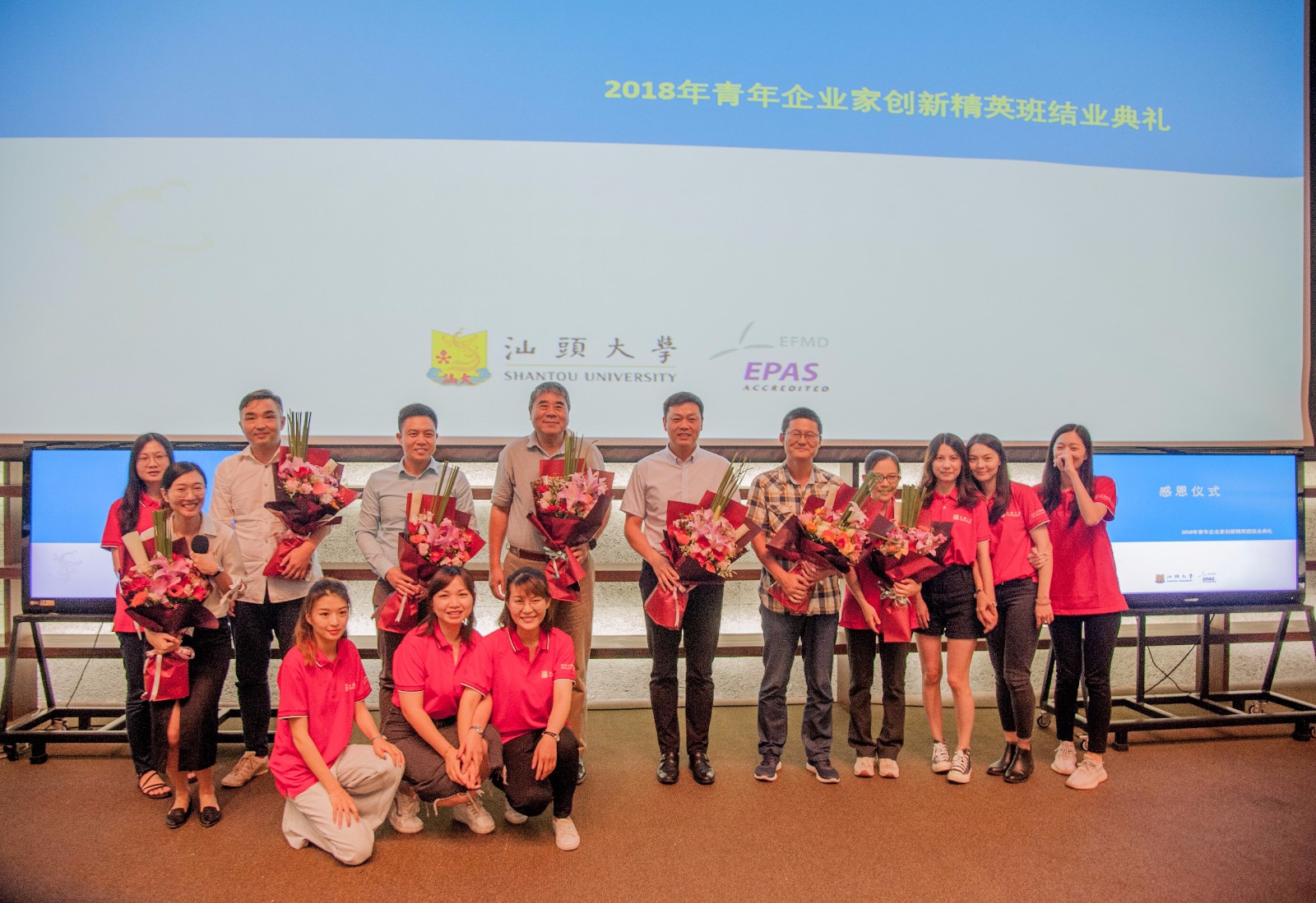 2019年8月31日下午,汕头大学商学院2018年青年企业家创新精英班结业典礼在汕头大学图书馆报告厅顺利举行。汕头大学喻洪副校长、商学院徐二明院长、商学院邹志波书记、副院长、商学院MBA教育中心梁强主任、长江艺术与设计学院李昊宇副教授、商学院蔡欢副教授及吴少征校友带领的往届精英班校友应邀出席此次结业典礼。