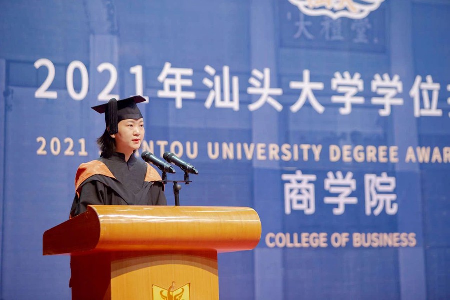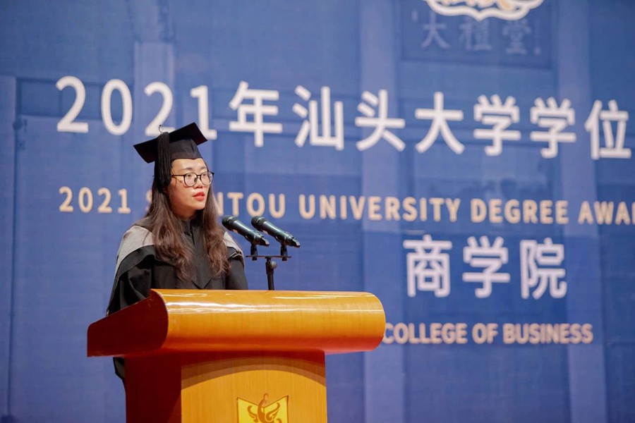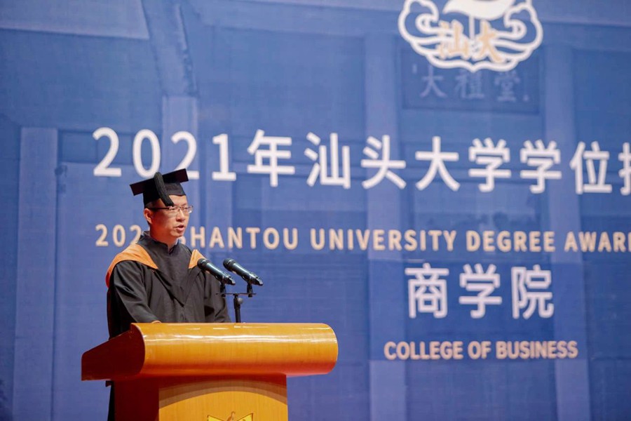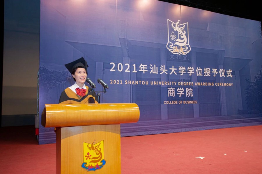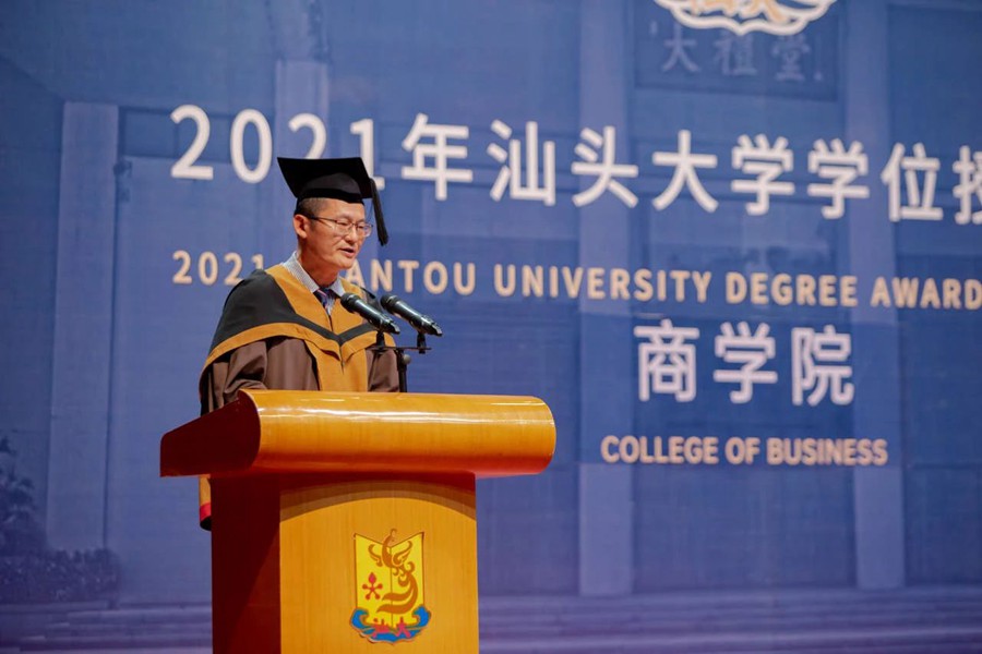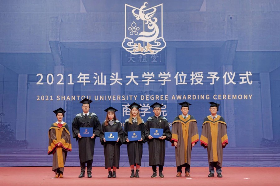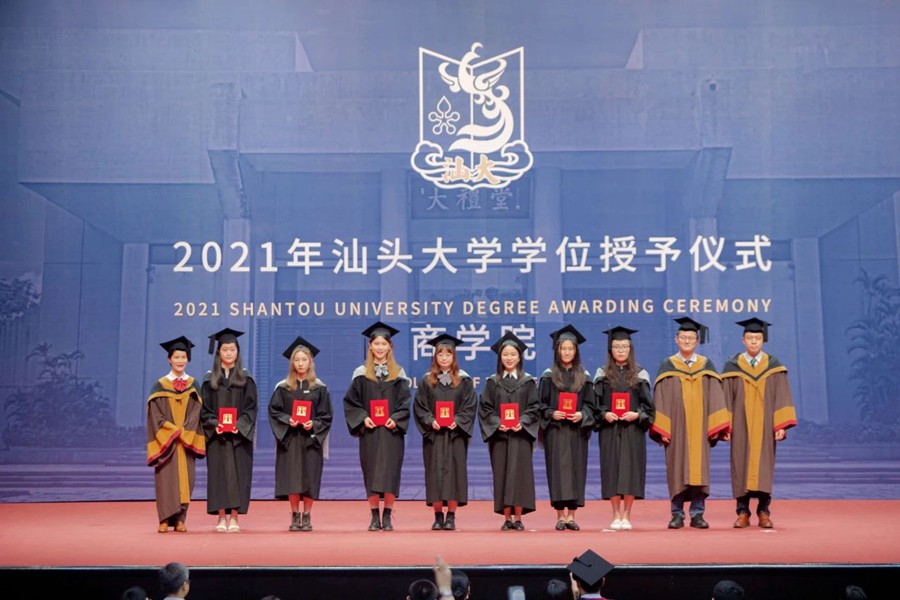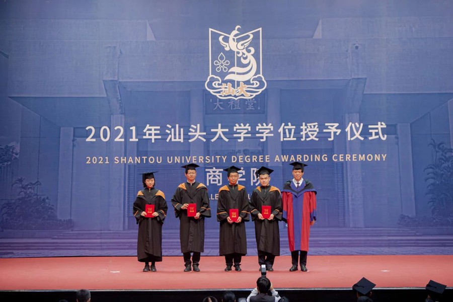 汕头大学商学院2021届毕业生学位授予仪式至此圆满结束。在毕业生即将“乘风踏浪再出发,策马扬鞭启新程”之际,祝愿商学院2021届全体毕业生在新的征途上放飞青春的梦想,前程似锦!