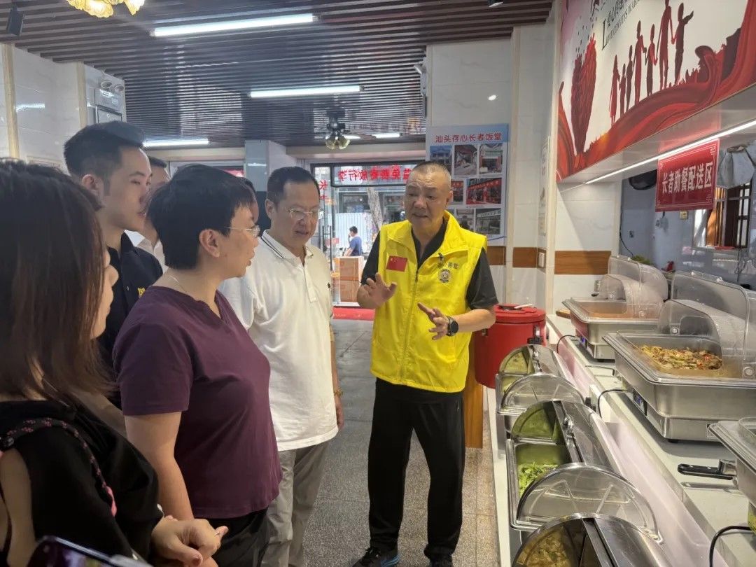 据悉,存心长者饭堂长期聚焦社区内60岁以上独居、空巢、失能、残疾及高龄等特殊老年群体,坚持每日免费提供三餐。作为一项切实解决老年人“吃饭难”的民生工程,存心长者饭堂致力于让长者共享“百千万工程”发展成果。在负责人的带领下,老师和校友们实地参观了饭堂的用餐区、后厨操作间及配套设施,并详细了解了老人们的日常订餐流程、餐品营养搭配标准及各项服务保障细节。