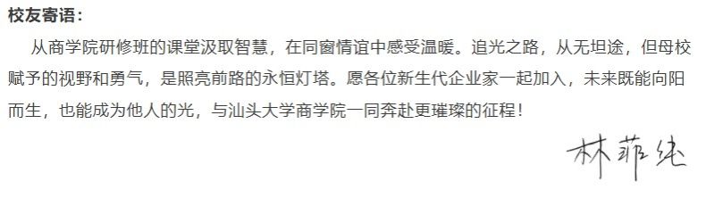 校友故事专栏正式启动!本专栏将不定期聚焦汕头大学商学院高管研修班校友,深度分享他们在事业发展与人生探索中的成长故事。我们将真实呈现校友们在创业创新、企业管理、职业进阶与社会服务等领域的实践经验、智慧思考与人生感悟。这里有潮汕商脉与现代商学思维的交融,有砥砺奋进的奋斗历程,更有汕大校友群体的风采与力量。关注我们,一起解锁校友的精彩故事!欢迎校友投稿,联系人:李老师(电话:0754-86502885;15817970098)