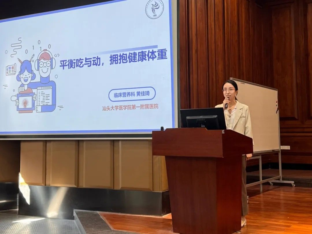 活动当天,同学们首先聚焦健康知识学习,参与了由汕头大学医学院第一附属医院临床营养科黄佳琦医生与刘树妮护士长联袂主讲的健康讲座。考虑到MBA学生多处于高强度工作与学习状态,两位主讲人精准结合生活特点,将专业知识转化为实用指南。