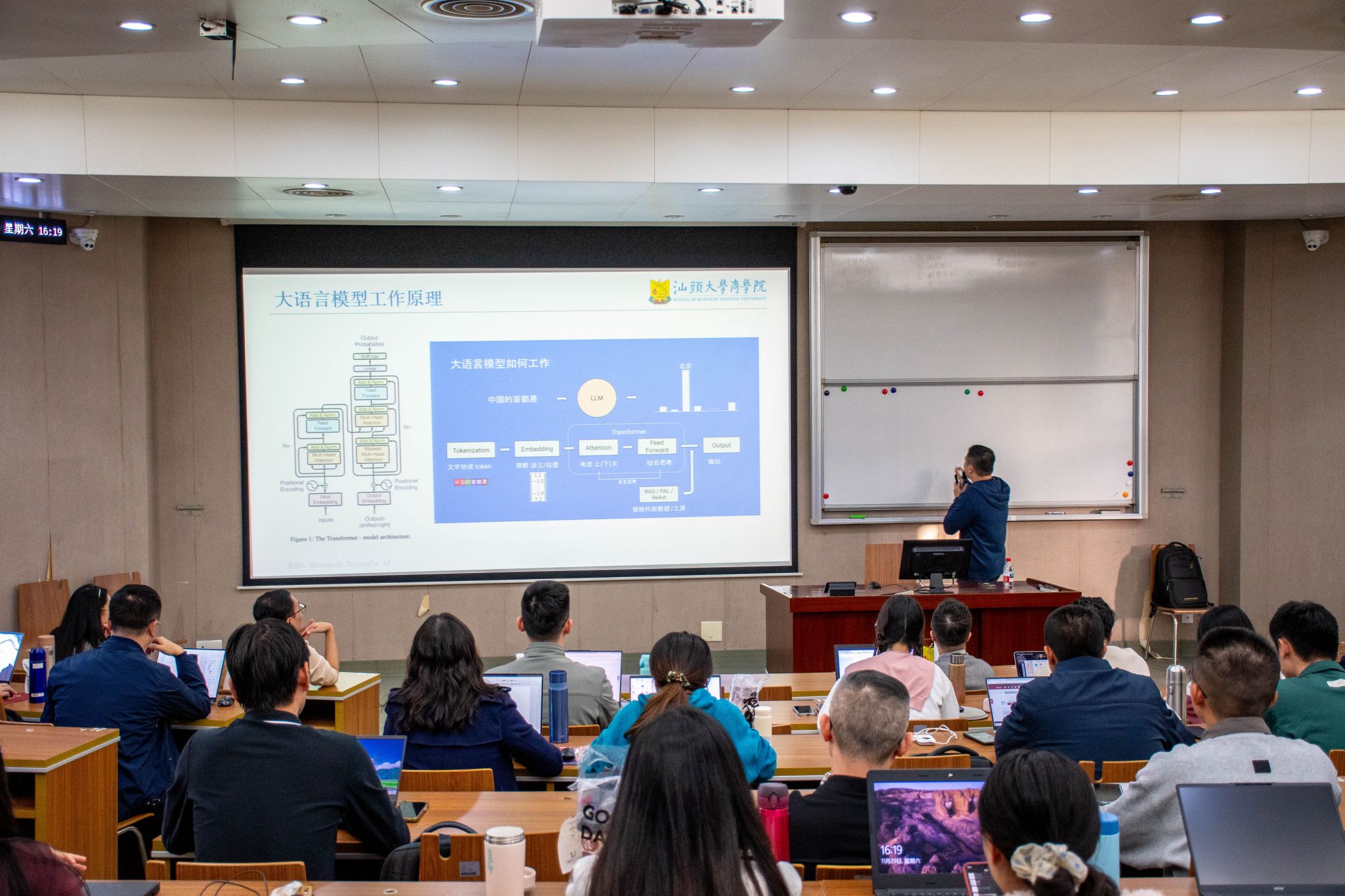 11月29日,汕头大学商学院MBA教育中心第29期MBA大讲堂在桑浦山校区E座教学楼顺利开讲。本次讲座特邀商学院陈铠敏老师担任主讲人,以“用AI打造私人商务助理:从提示词、工作流到智能体实践”为核心主题,通过极具操作性的讲解与演示,为现场MBA学生带来了一场干货满满的实战型分享。
