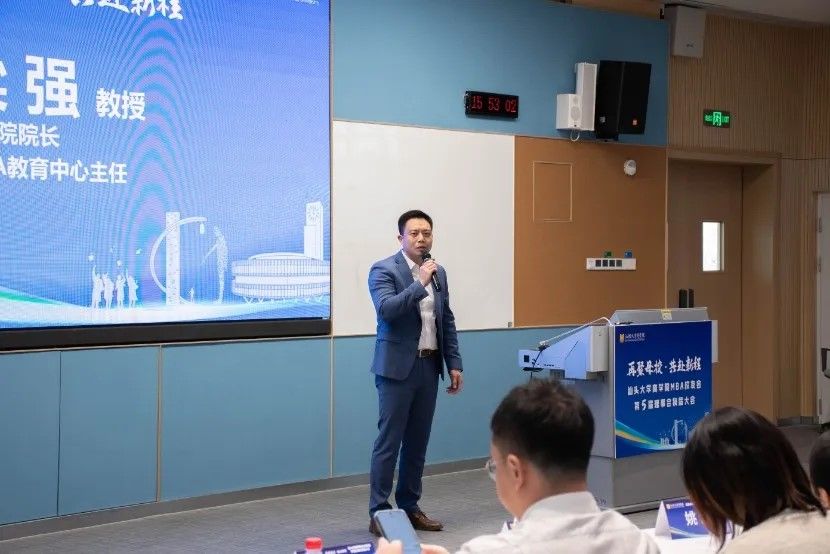 图为汕头大学商学院院长、MBA教育中心主任梁强致辞