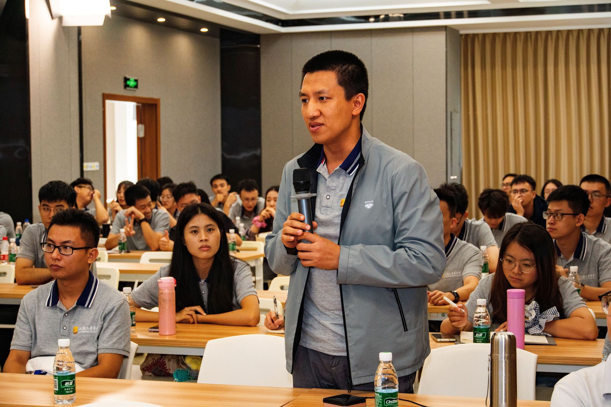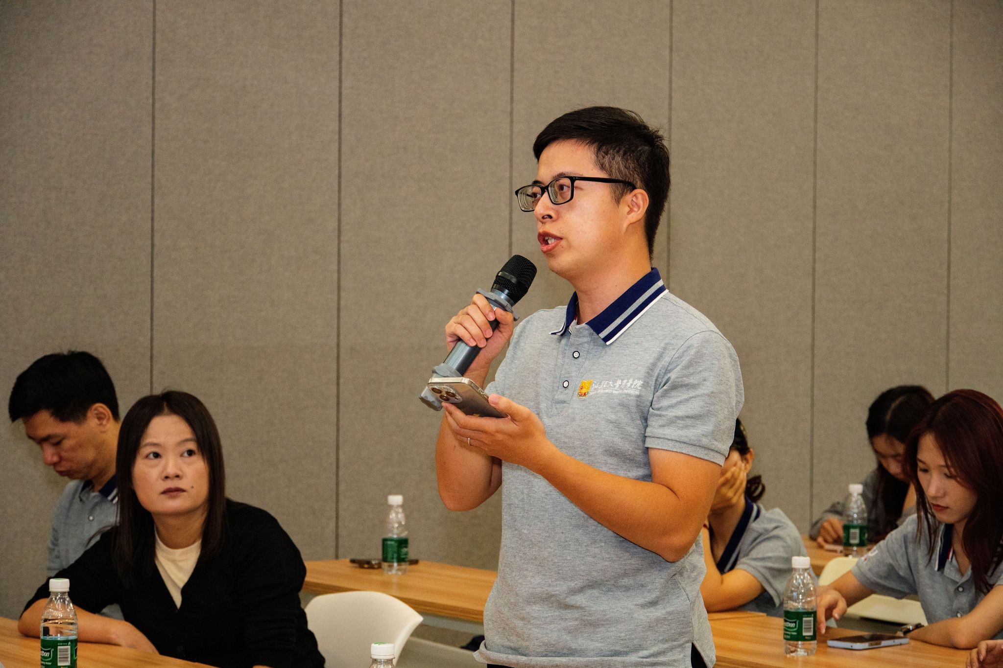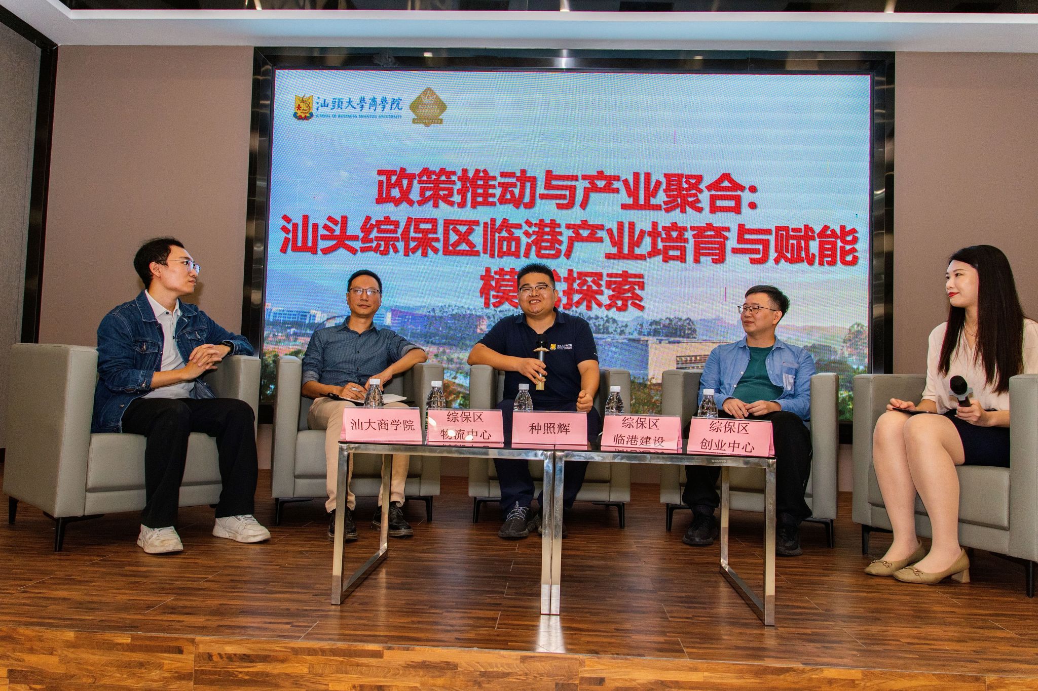 集体参观结束后,师生团队在创业中心多功能厅与园区企业代表展开深度座谈。汕头保税区物流中心有限公司陈鹏总经理、汕头综合保税区侨湾建设投资有限公司(汕头保税区临港建设有限公司下属子公司)周俊鑫总经理、汕头综合保税区创业中心刘小瑜总经理作为园区代表,与商学院种照辉副教授及同学们围绕产业培育政策举措、开发与土地利用效率提升、共享创新平台建设、人才培养体系构建等关键议题深入交流,全面展现了综保区在产业创新与人才创新领域的先进实践。座谈中,同学们积极提问,针对招商引资机制、项目报批流程等实操问题,得到了企业代表的细致解答,进一步厘清了园区发展的底层逻辑。