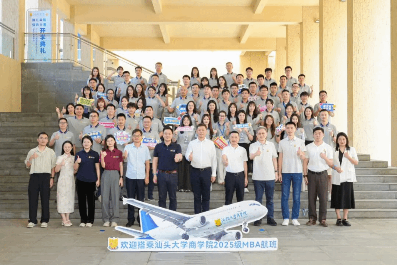 2025年9月13日上午,汕头大学商学院2025级MBA新生开学典礼在汕头大学桑浦山校区图书馆报告厅举行。新生以“智汇商院·驭势未来”登机牌签到,开启两年半学习之旅。汕头大学党委常委、副校长喻洪,研究生院副院长李润钿,商学院院长、MBA教育中心主任梁强以及商学院师生代表参加了典礼。此次典礼由新生郑泽、赖欣妮主持,并通过网络同步进行照片直播。