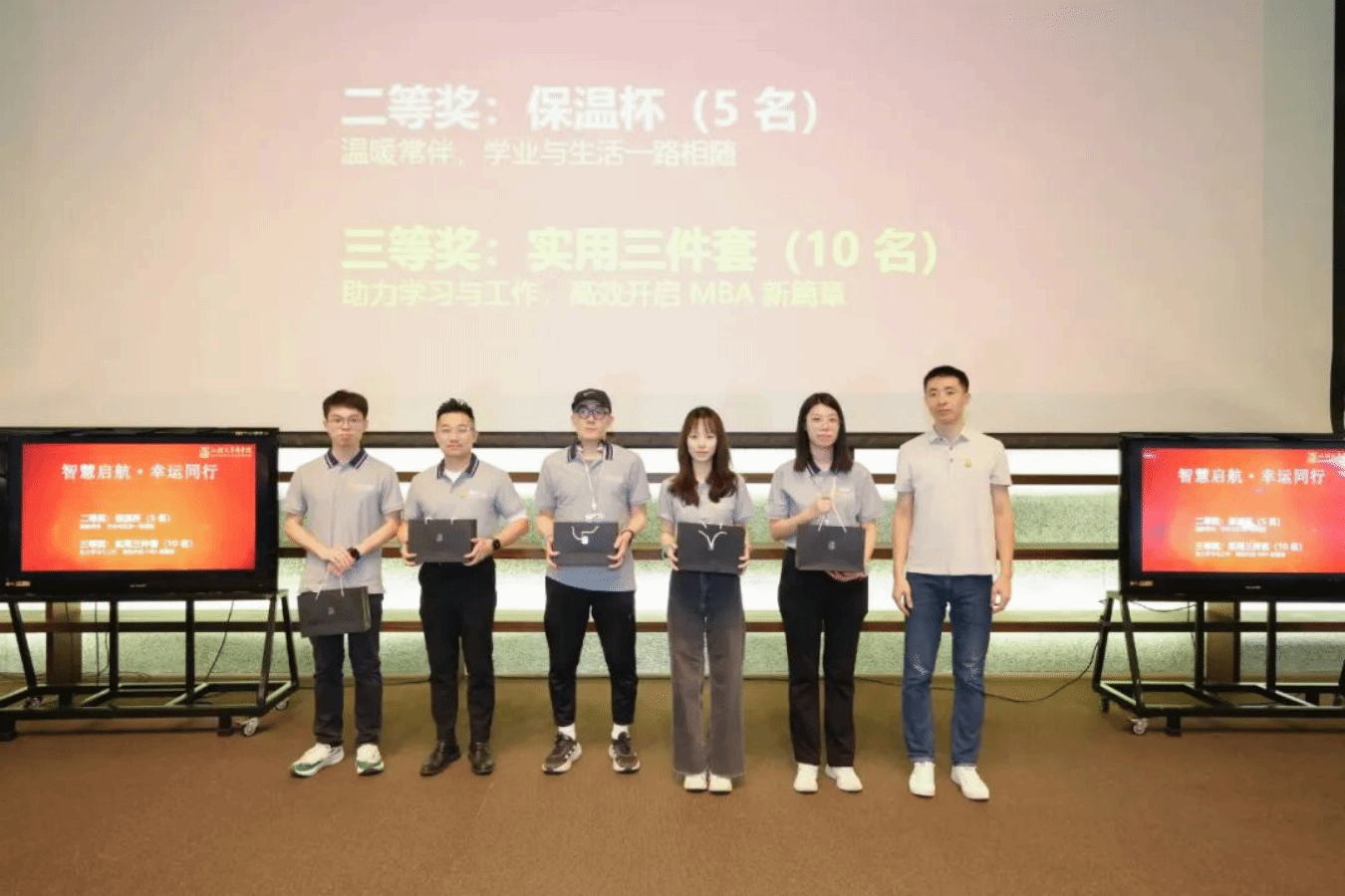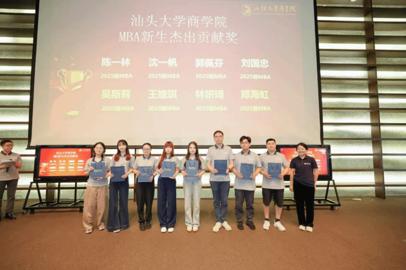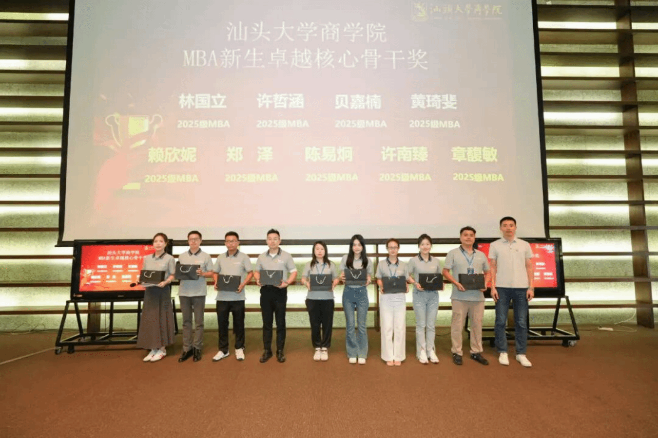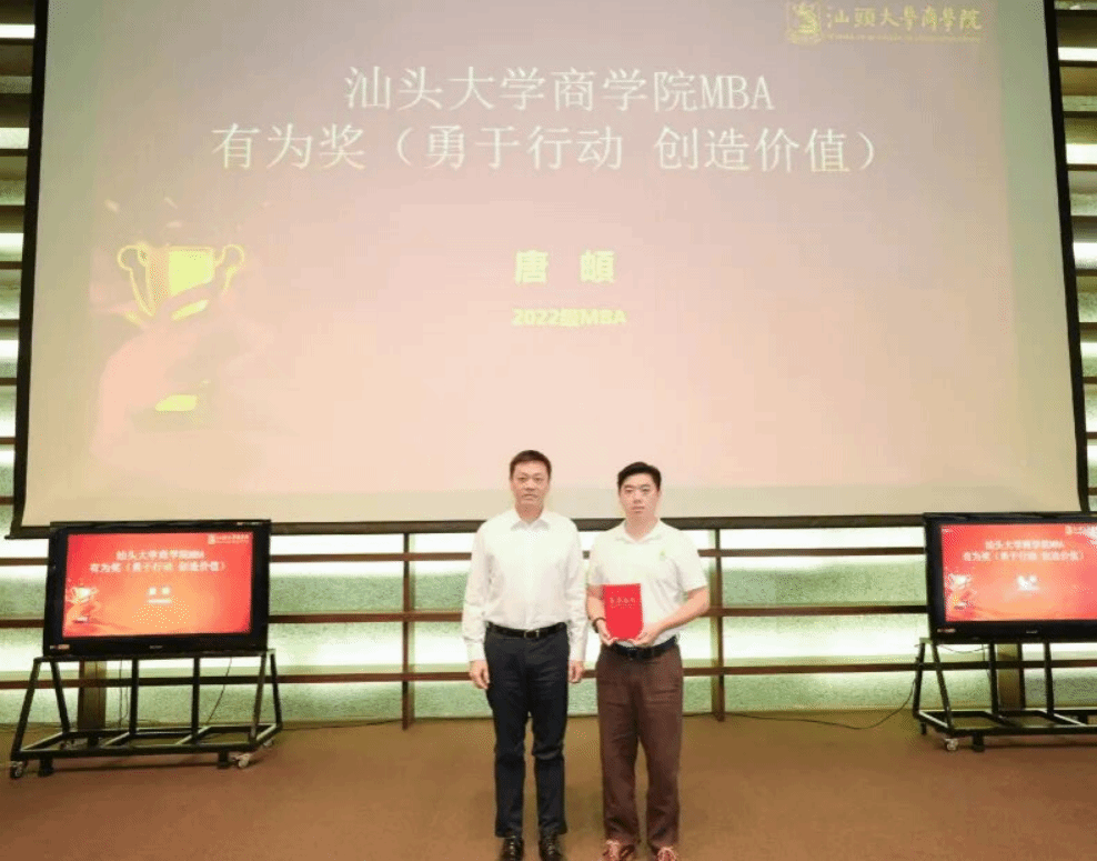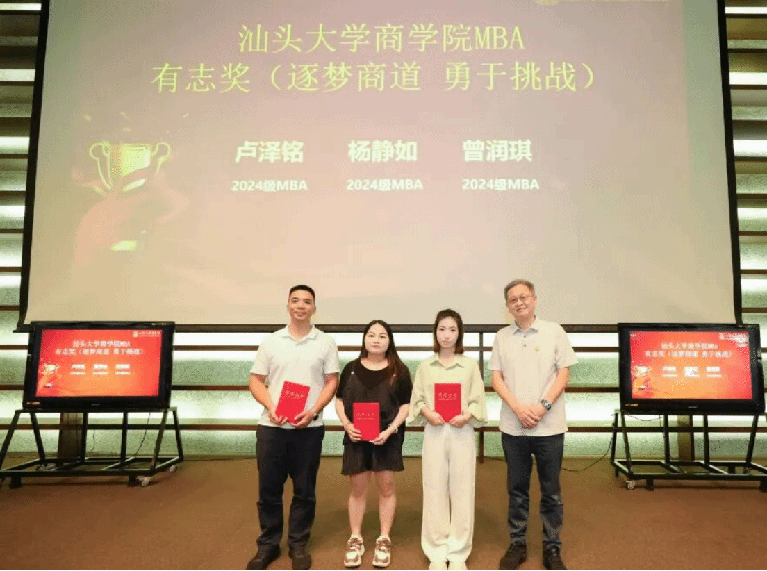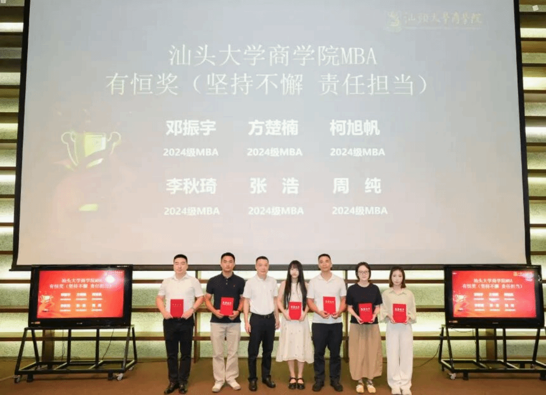 MBA学生始终以实际行动诠释着“有志、有识、有恒、有为”的汕大精神。为表彰在竞赛、社会责任等方面表现突出的同学与校友,典礼现场特别设置并颁发了“有志奖”“有识奖”“有恒奖”“有为奖”,以激励更多学子砥砺前行。