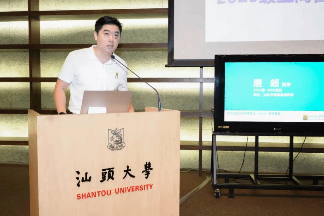 2024级MBA班长李秋琦与2022级MBA校友代表唐頔在典礼上分享了他们在汕头大学商学院学习期间的收获与感悟。