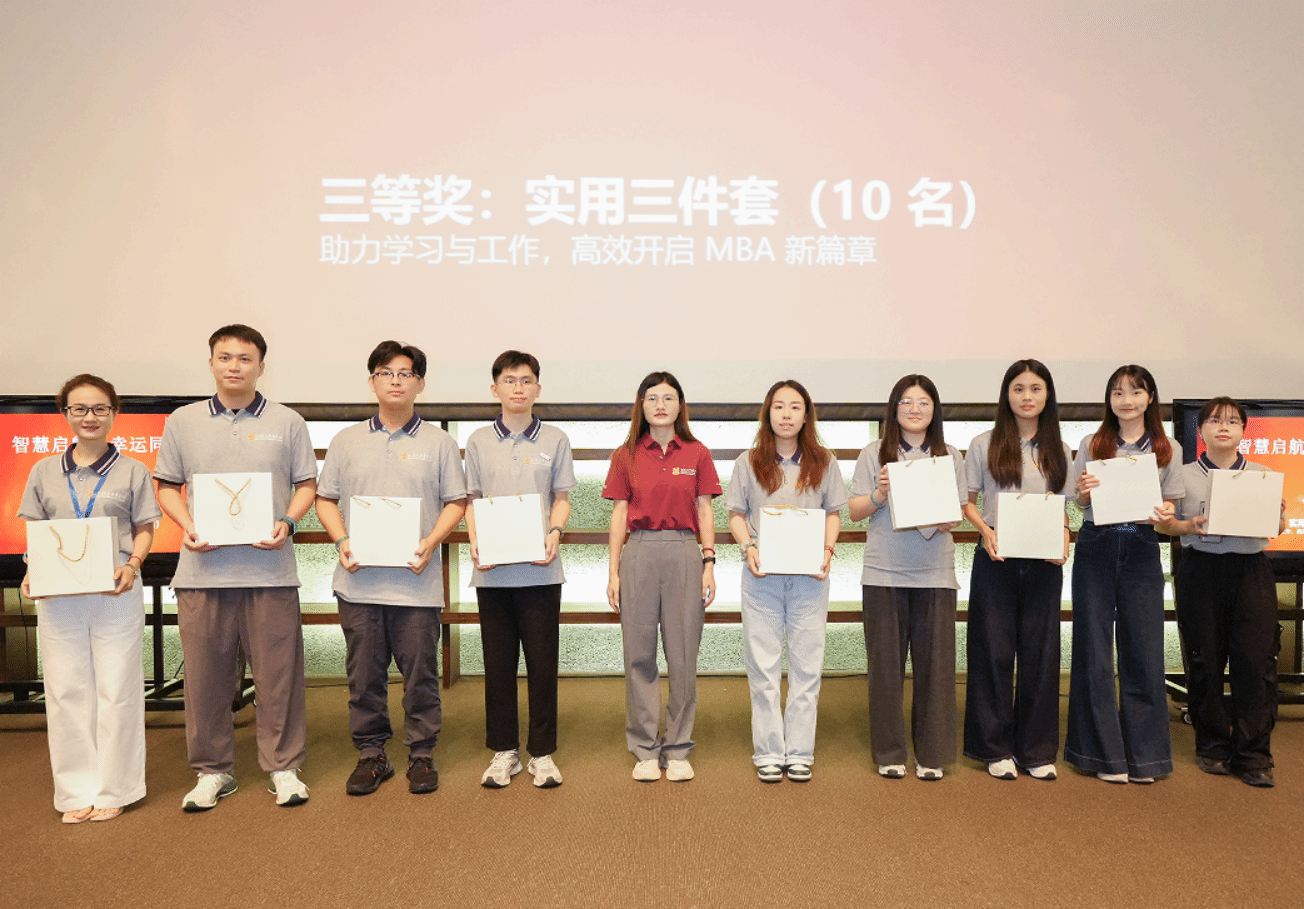 为感谢幕后人员的辛勤付出,商学院陈创斌、林翠梁两位老师为2025级MBA新生筹备组颁发了“新生卓越核心骨干奖”和“新生杰出贡献奖”,以表达学院对同学们无私奉献与全情投入的诚挚认可。他们用行动诠释了团队精神,共同呈现了一场温暖而精彩的开学典礼。