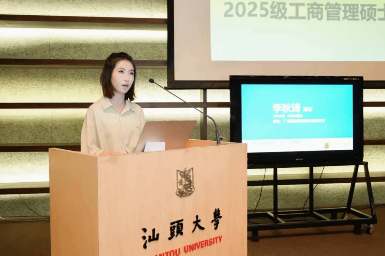 李秋琦学姐从“突破自我”和“收获友谊”两个方面展开。她表示,汕头大学MBA的教育理念注重多元与包容,使她逐渐打破了对“标准答案”的依赖。在学习过程中,来自不同领域的师生不仅丰富了她的视野,更成为职业与生活中相互支持的伙伴。这张宝贵的能量网络,已成为她人生中不可或缺的财富。