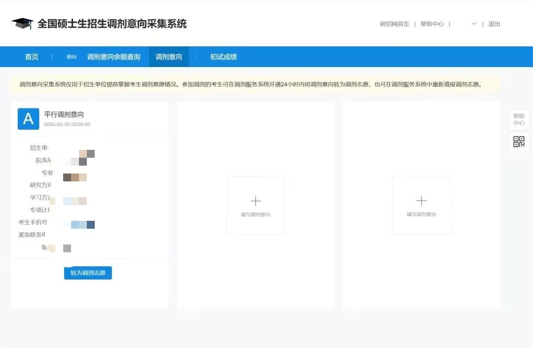 2.调剂服务系统开通后,调剂意向采集系统的查询调剂意向余额信息和填写调剂意向功能将关闭。